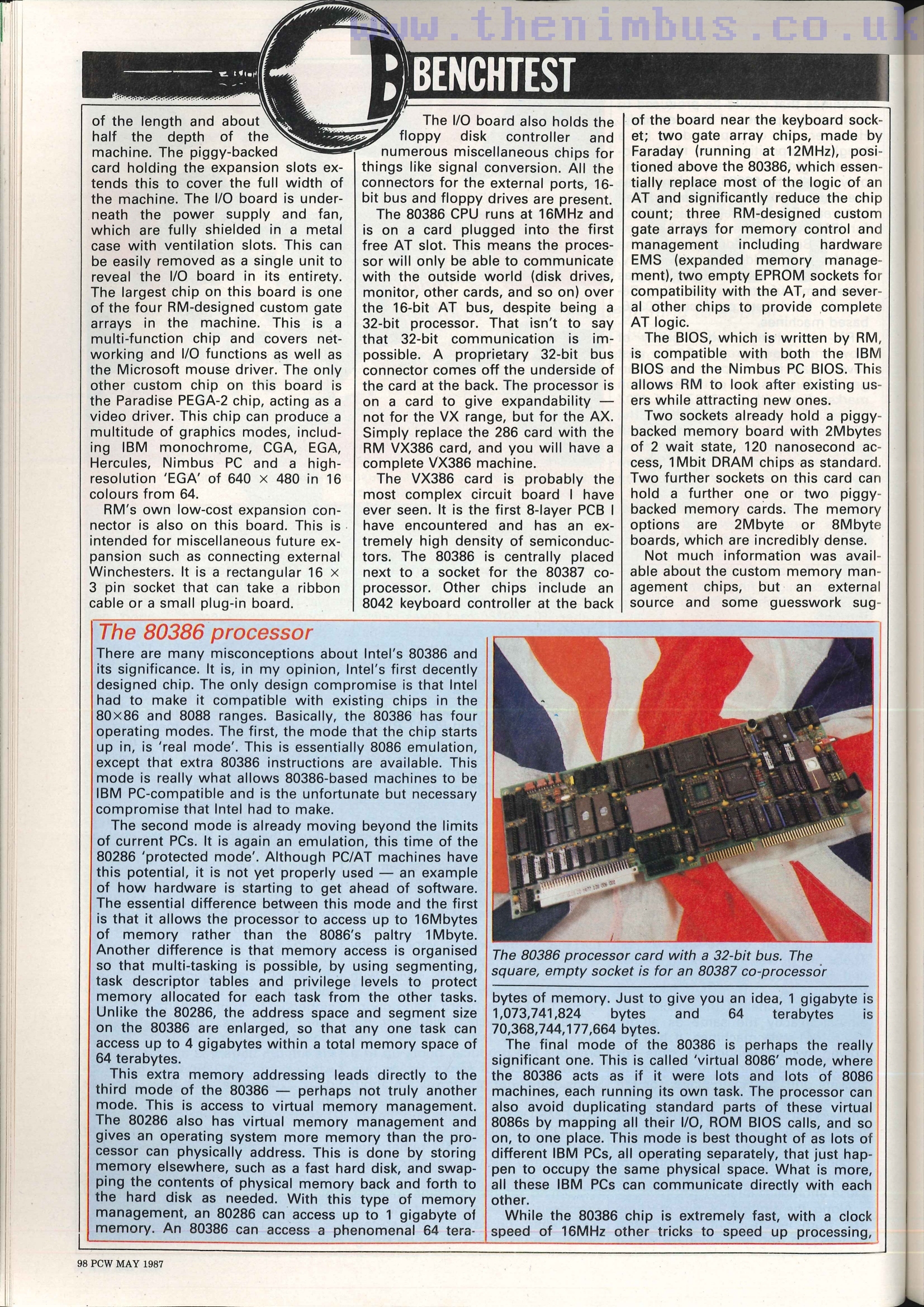 Article on the RM Nimbus VX386 from PCW Magazine May 1987